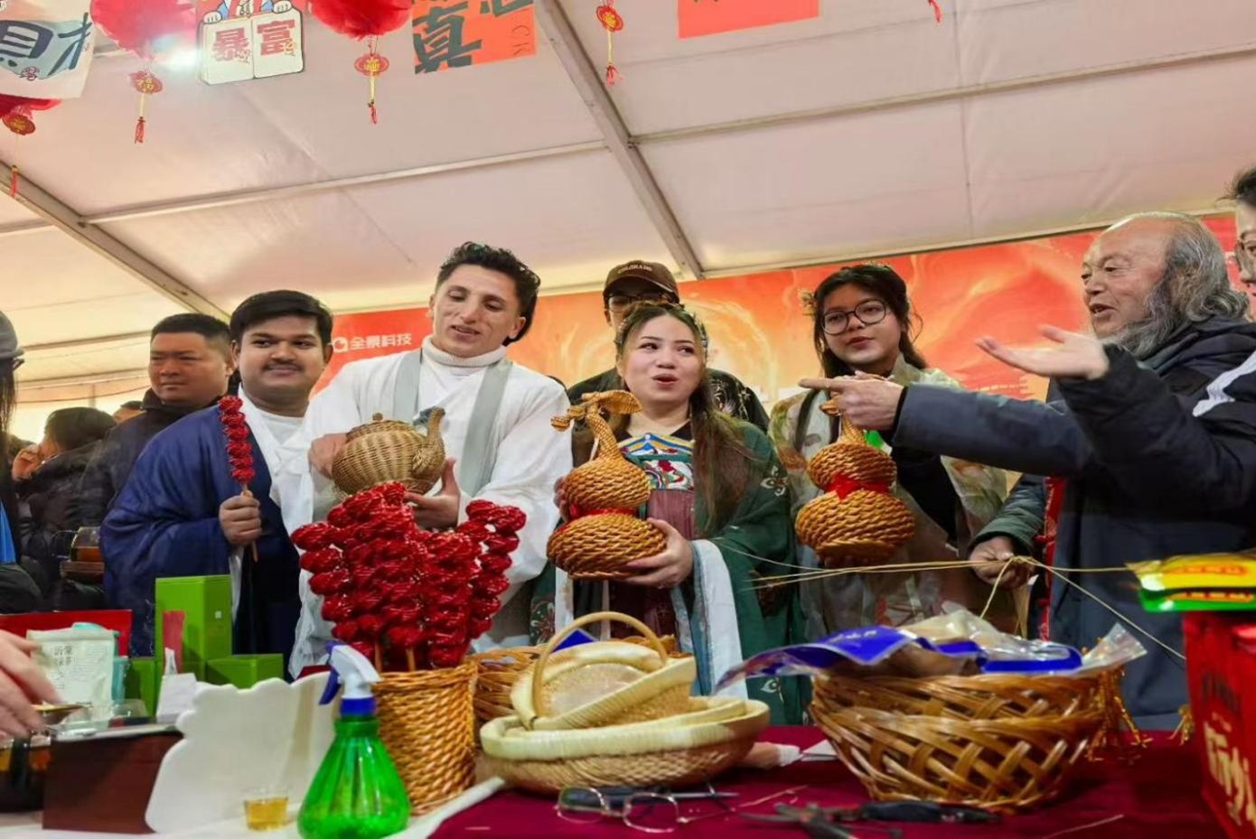 实践后期,团队成员前往临沂市人民广场参加临沂市数字文化体验月暨黄河大集新春季活动,深入了解沂蒙剪纸、郯城木版年画等十余项临沂非遗,理清不同项目的传承痛点与创新路径。遇外籍游客驻足,成员们以英语为桥,生动介绍柳编的文化脉络、剪纸的民俗内涵等,当海外友人感慨“这些手作里都是中国故事”,实践的价值也随之落地——从柳编的“一根柳条”到临沂非遗的“多元共生”。
