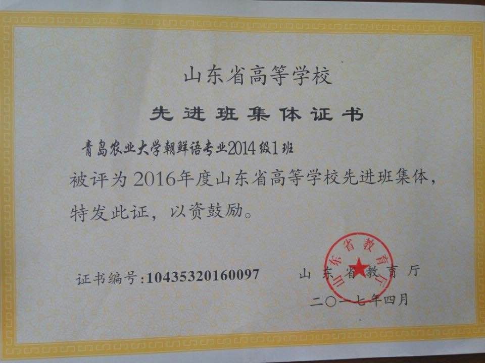 这儿是朝鲜语2014级1班,2016年度山东省高等公司先进班集体。在一个集才华与活力于一身的优秀班集体。