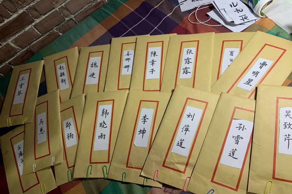 孙瀚彬是日语1502班22名同学中“仅有的”4名男生中的一员,担任班级宣传委员。他为全班每一位同学准备的礼物,都放在亲笔书写同学姓名的信封中,信封内有同学们喜欢的挂件、漫画、书法书签和校园风景明信片。“正好自己也会画画和书法嘛,所以就做了这些小东西”,在被问到为什么想到送礼物这个问题时,孙瀚彬说道,“我觉得‘毕业’二字在六月显得挺沉重的,想起大家四年一千多天的朝夕相处,这时候感觉非常珍贵。相遇都是有意义的,有些人可能毕业后再也不容易见到了,所以我觉得这些微不足道,相遇真的是很美好的事。”